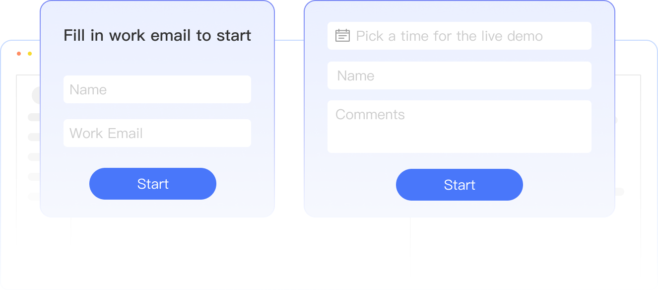 Built-in survey form, strategically placed before and after the demo, significantly boosts retention and quality. Visitors can also directly schedule a sales consultation.