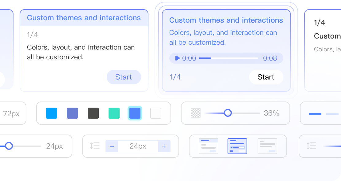 Custom themes, full-screen playback, autoplay, focus zoom, suitable for various scenarios.